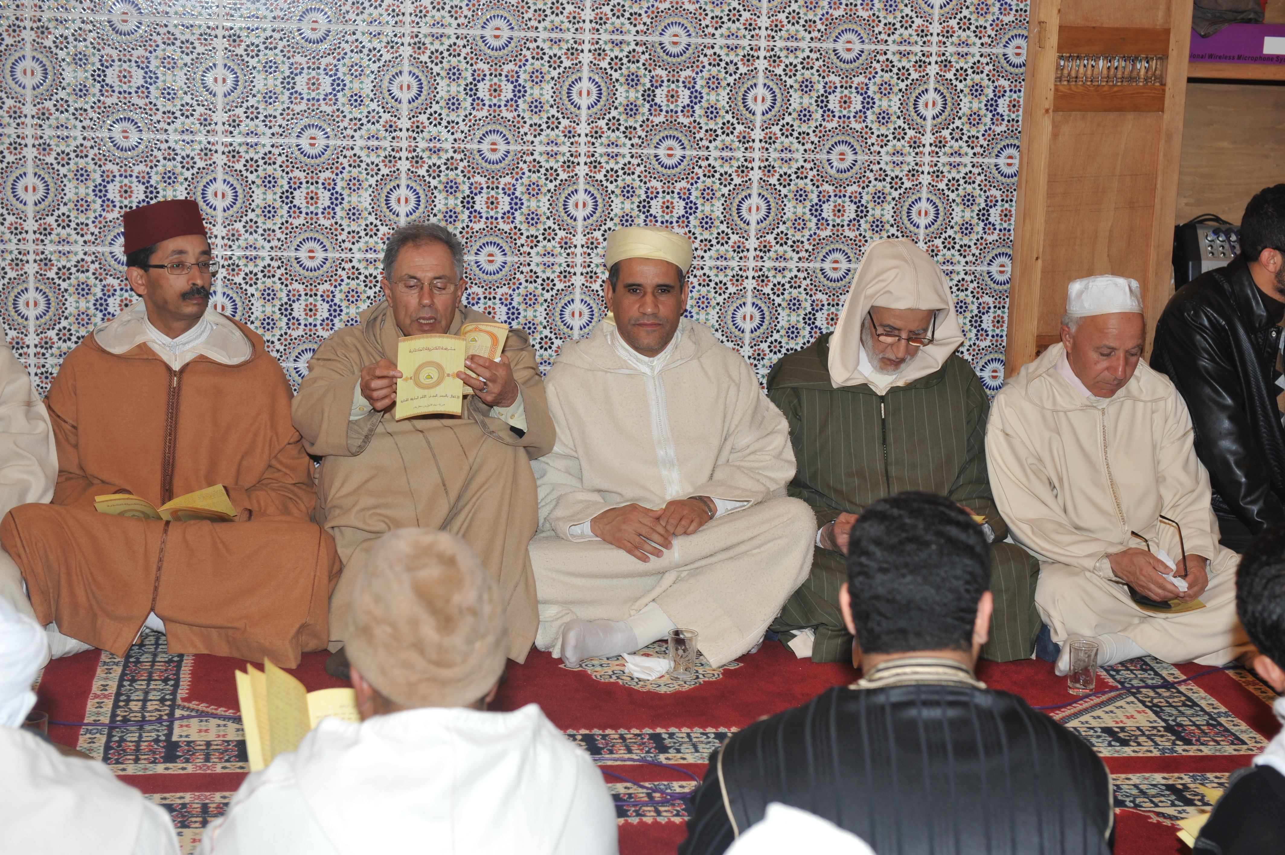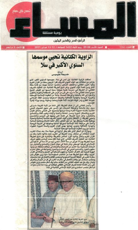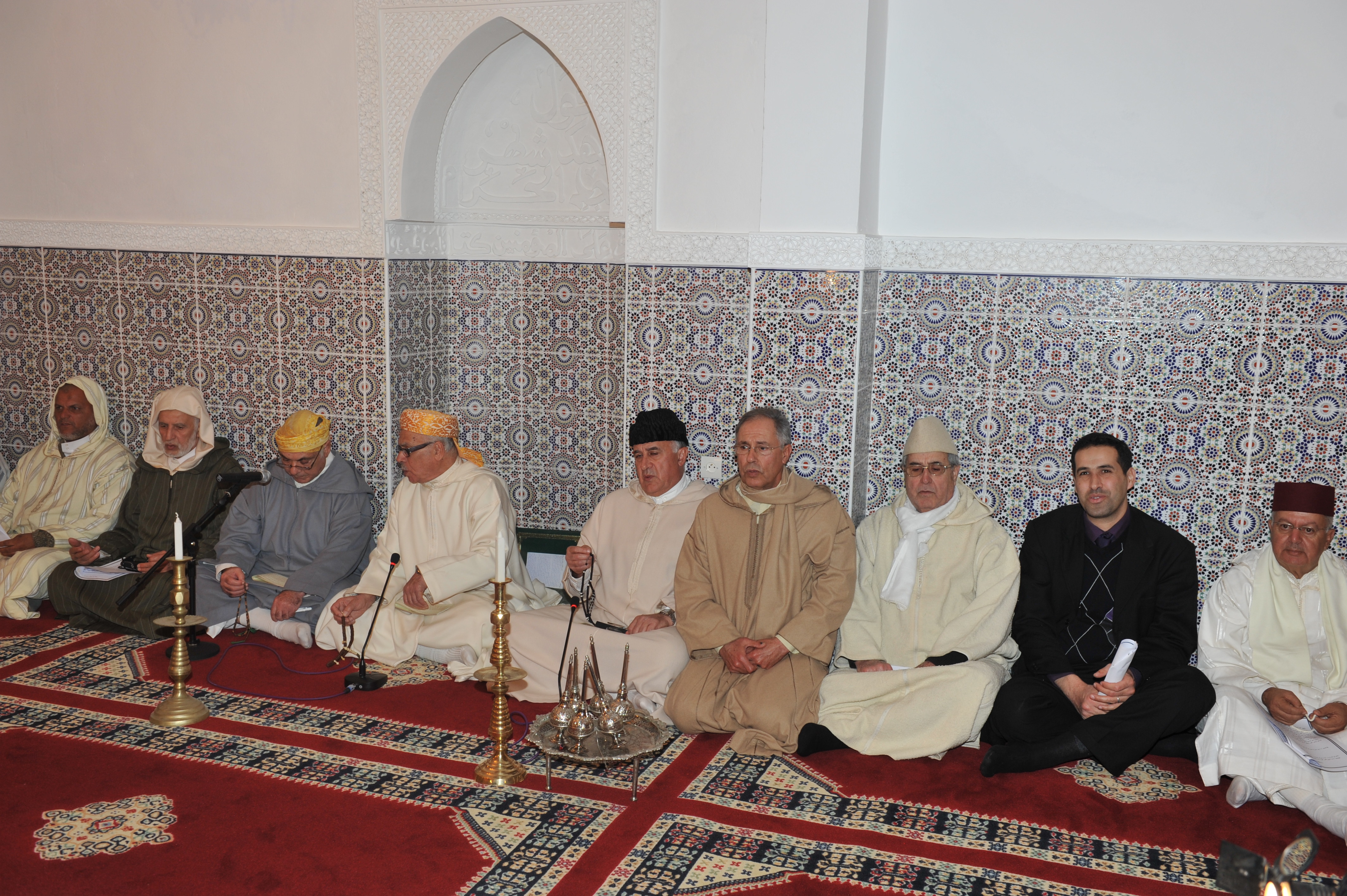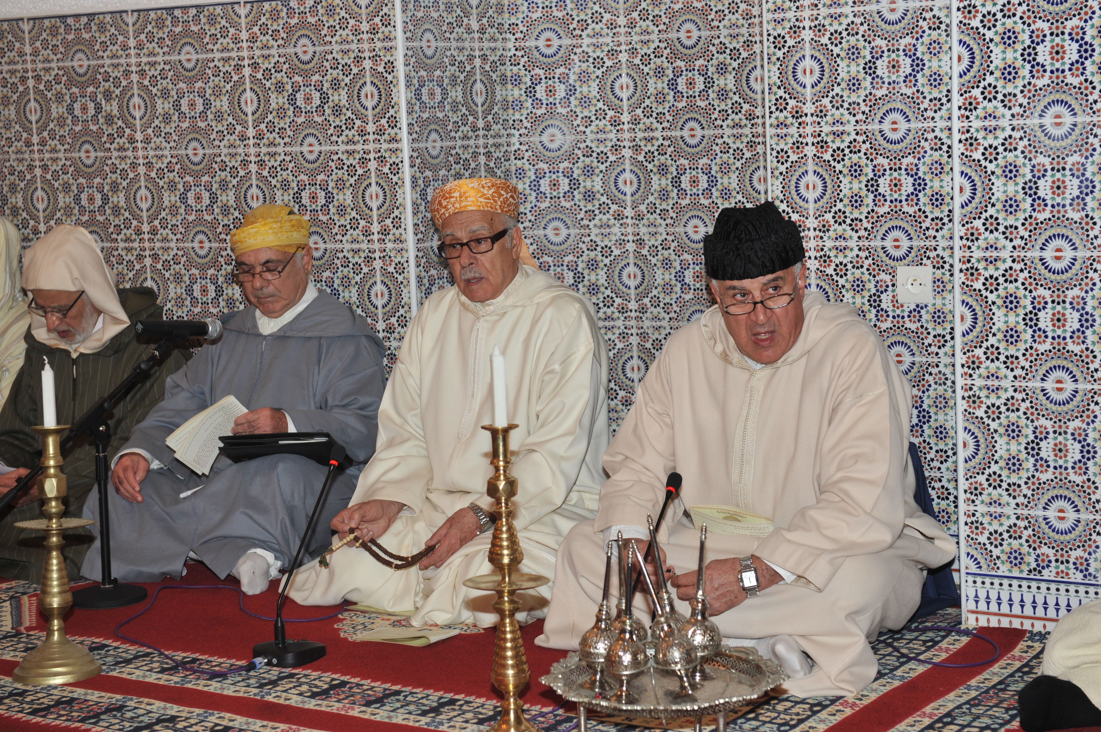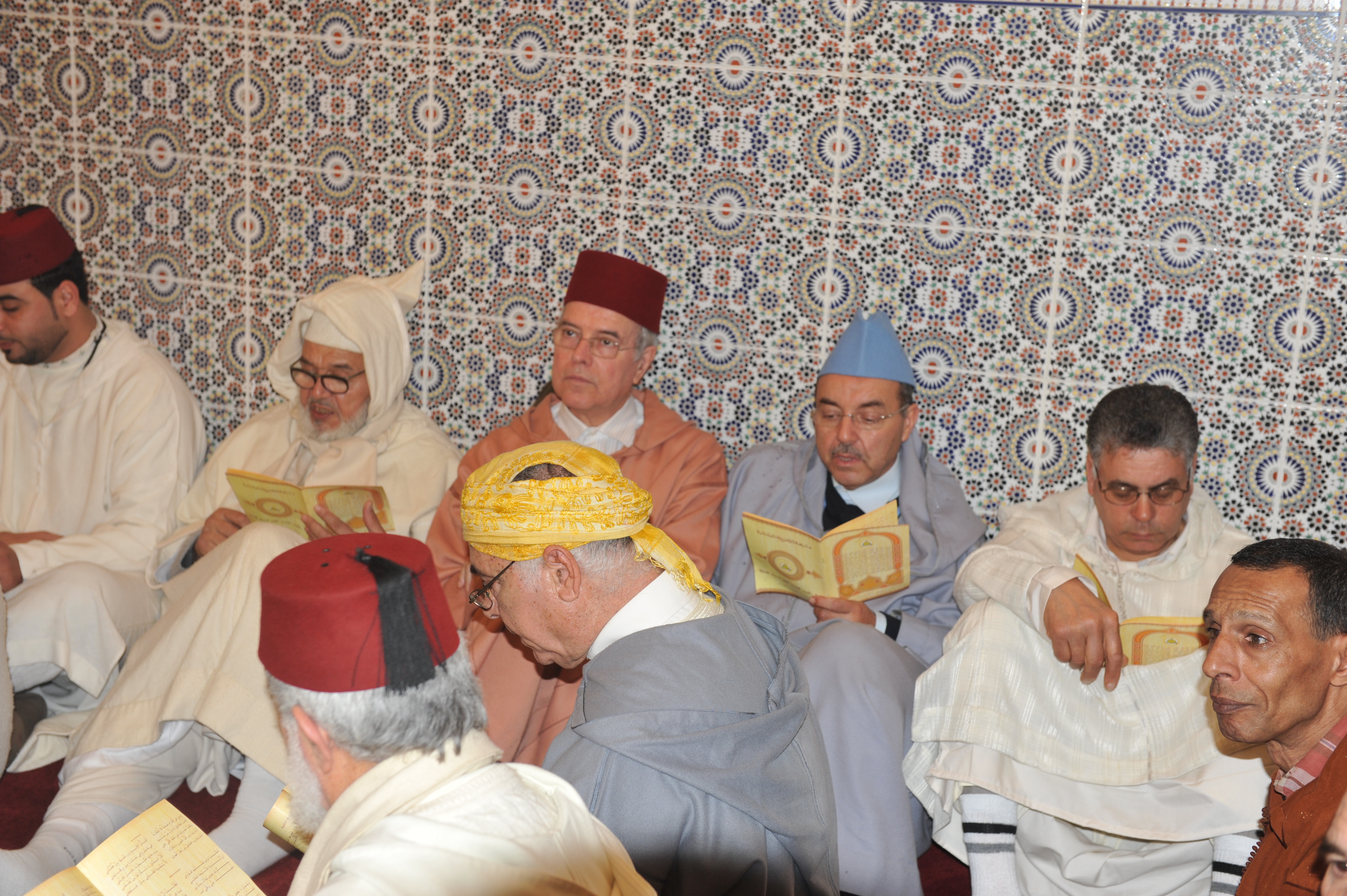 فضيلة شيخ الطريقة الكتانية الأستاذ عبد اللطيف الشريف الكتاني في زيارة للزاوية الكتانية بأولاد سدرة “ضاحية مدينة القصر الكبير” تلبية لدعوة فقراءها في أوائل الخمسينات من القرن الماضي، في احتفالهم بالموسم الأكبر للطريقة، الذي يتزامن واحتفالهم بالمولد النبوي الشريف.