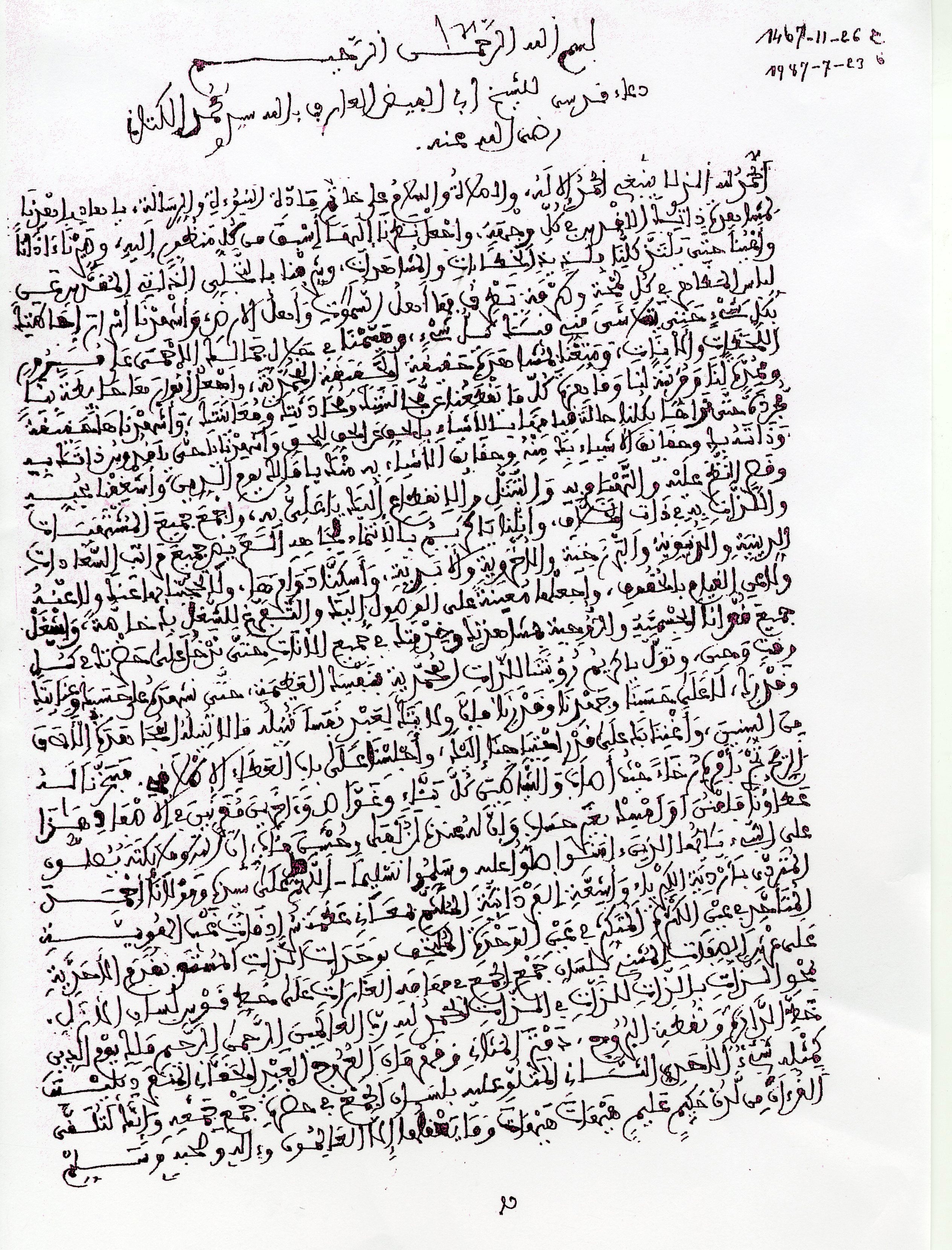 للشيخ أبي الفيض العارف بالله سيدي محمد الكتاني رضي الله عنه بخط الشيخ سيدي محمد الطيب الشريف الكتاني، حققه وأخرجه نجله شيخ الطريقة الكتانية: